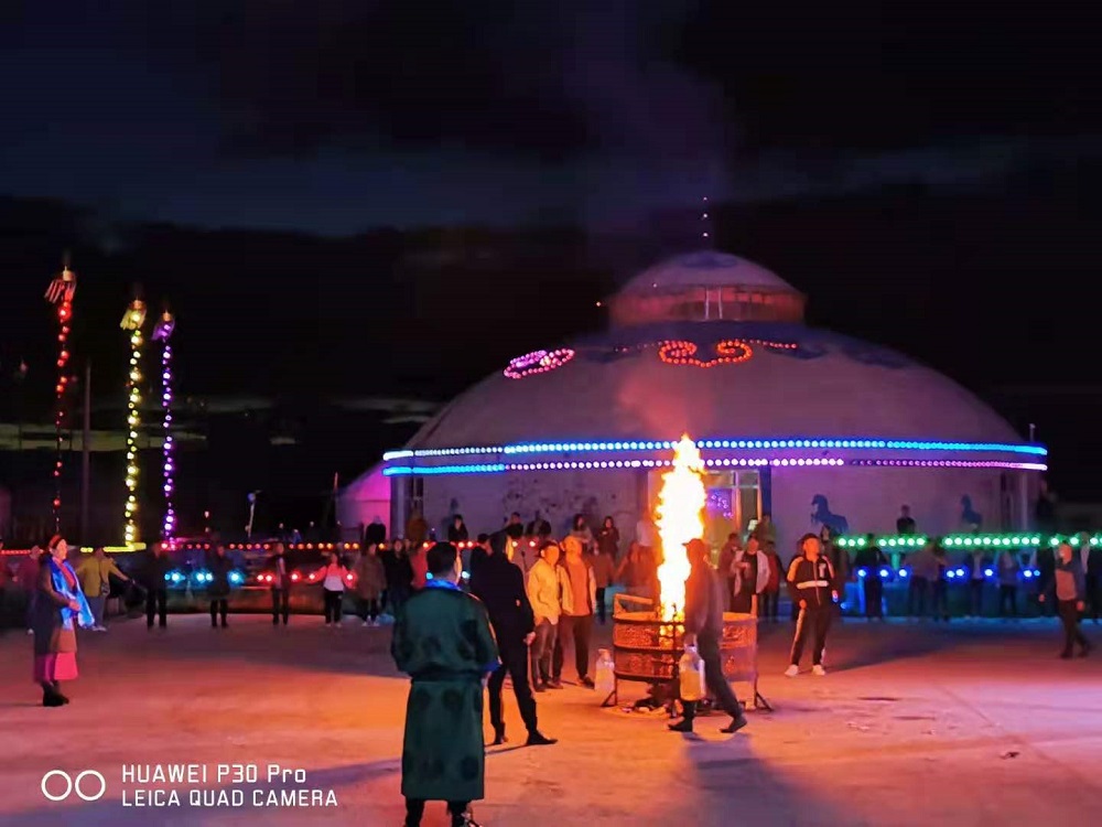 民俗篝火晚會(huì),歌舞表演體驗(yàn),一望無(wú)際的草原、布滿(mǎn)天空的星辰、吃草的牛羊,跳躍的篝火......
