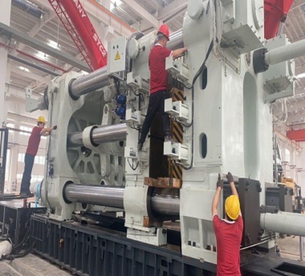 春興一號(hào)4000噸壓鑄機(jī)是春興目前擁有的最大噸位壓鑄機(jī),目前壓鑄機(jī)的組裝已經(jīng)初見(jiàn)雛形,一個(gè)龐然大物赫然佇立在新建成的壓鑄車(chē)間。截至發(fā)稿,力勁廠家的調(diào)試模具也已經(jīng)開(kāi)始吊裝。由于正直酷暑,力勁廠家和春興現(xiàn)場(chǎng)工作人員冒著高溫,按照排好的安裝計(jì)劃緊鑼密鼓地加緊安裝,春興方的配合人員在保障好現(xiàn)場(chǎng)安裝需要的同時(shí),也積極準(zhǔn)備壓鑄機(jī)調(diào)機(jī)所用的物資,力爭(zhēng)早日安裝好進(jìn)入調(diào)試階段。